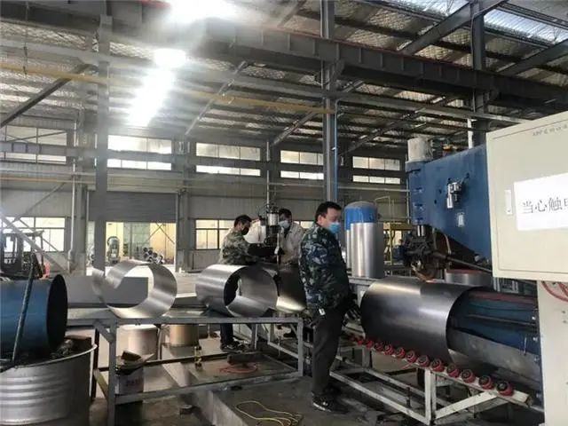 在句容市正浩制桶有限公司生产车间,工人们忙碌的身影和机器的轰鸣声构成了一幅稳生产的和谐画卷。生产线上,工人佩戴口罩,有的专注于工序操纵,有的忙碌于物料运输。