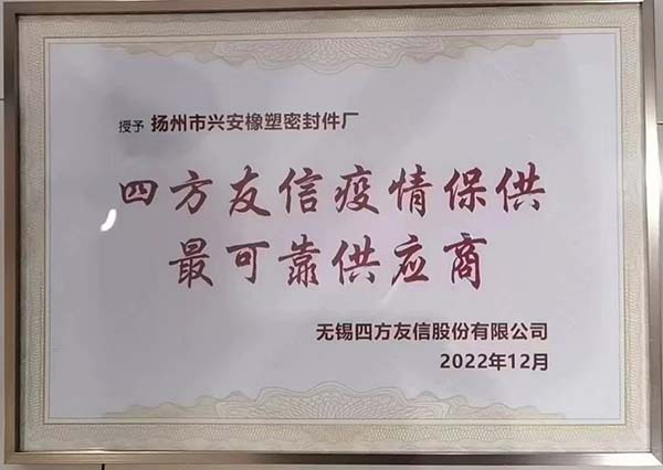 昨日,扬州兴安橡塑密封件厂董事长刘书霞女士,收到了一块特别的奖牌。为刘书霞颁发奖牌的是无锡四方友信股份有限公司副总经理张勤女士。