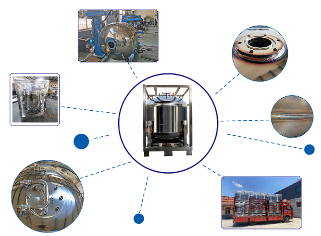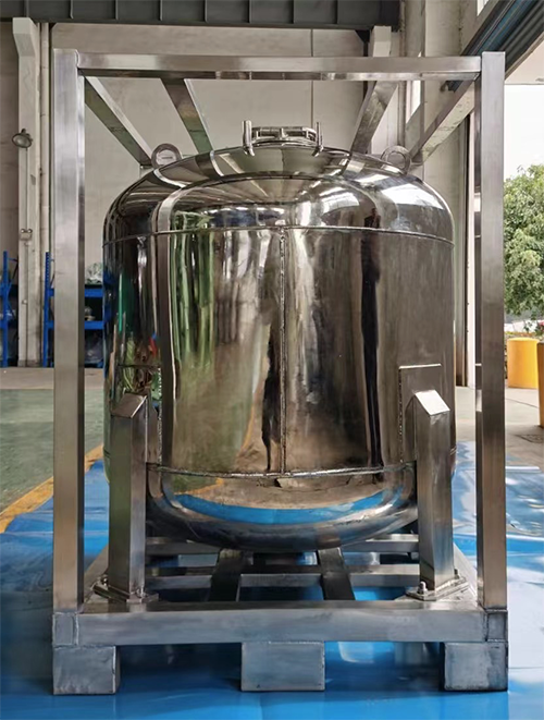 不锈钢电解液吨桶,适用于新能源等行业的制造回收存储,一种能保持锂电池电解液仓储运输期间质量稳定的装置,具有卫生,耐压,防腐,压力出料、坚固耐用,便于长途运输等优点,该系列主要是用于锂电化工原料的容器。