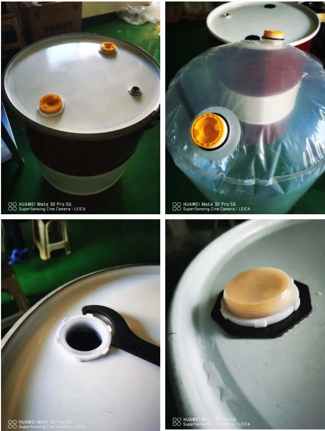 4、钢桶的内胆可以实现现场更换,方便快捷,且钢桶可多次重复使用,灌装后可以长途运输。