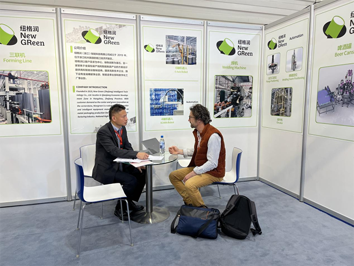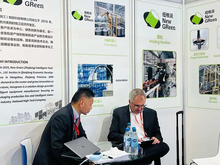 在全球金属包装行业日益注重智能化和可持续发展的大趋势下,纽格润的“绿色+创新”的理念吸引到来自欧美和印度、南美等国家的制桶厂商前来咨询,许多从事旧桶回收、清洗、循环利用业务的客户也进行了深入的交流和探讨。