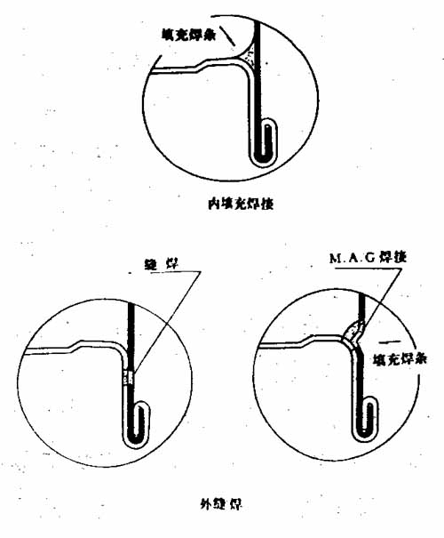 如图3所示,有三种形式的产品。一种是桶内缝焊接。其它两种是桶的外缝焊接,一种是缝焊;另一种是通过MAG的方法,用焊条焊接。不管哪种形式都是为了防止容纳物进入凹缝,以易于清洗,防止污染,增加桶的强度,以达到增加重复使用次数的目的。由于同普通的钢桶比较,这些桶可以被回收使用三次以上,因此,被称为"生态型钢桶。"