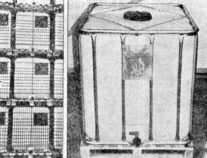 多数中型集装容器还包括有一只连接在一起的阀口,从而使液体内容物能以控制的数量排放。排放口处于容顺底部中央,能使容器内的所有液体,不管液体的稠度如何,都能排泄干净。集装容器固定在有插口的木托盘上。