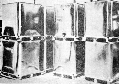 该集装容器还有开顶式的,它是由可移动的盖和内胆组成,可以进行冲洗、检查和调换,从而可继续使用金属外壳和托盘。