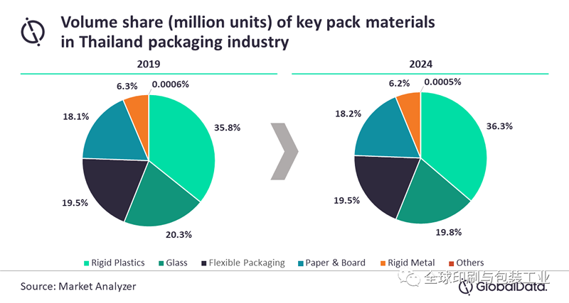 GlobalData的报告《泰国包装行业–趋势与机遇》显示,该行业主要受硬质塑料包装增长的推动,预计在2019-2024年间,其复合年增长率最快,为3.0%。紧随其后的是纸和纸板包装,预计在未来5年中,其复合年增长率为2.8%。