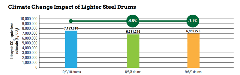 Climate Change Impact of Lighter SteelDrums ——轻钢桶对气候变化的影响Lifecycle CO2 equivalent——生命周期中的CO2当量