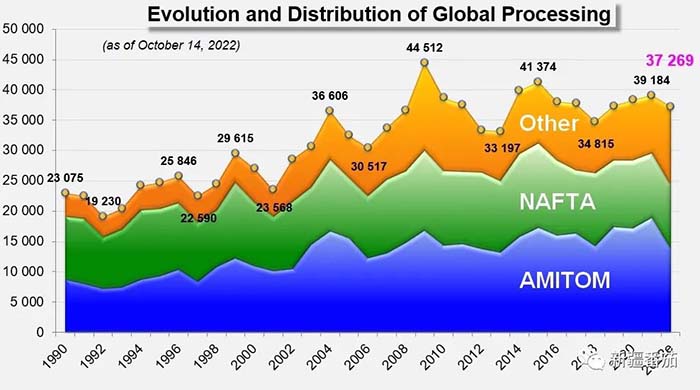 WPTC公布最新2022番茄季,世界番茄加工总量: