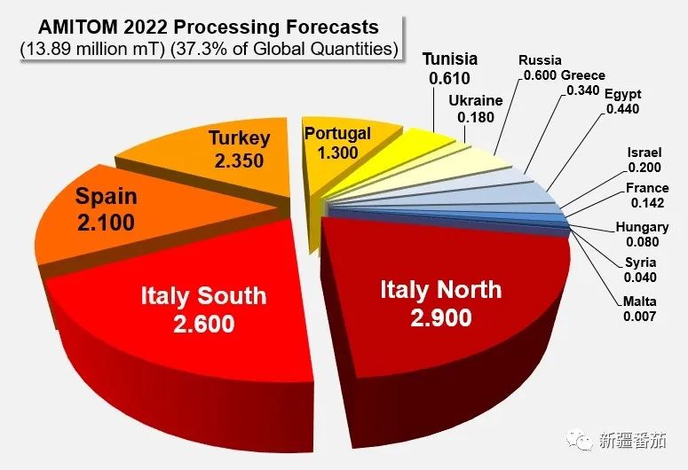 蓝色区域:代表地中海沿岸区域数量番茄加工数量
