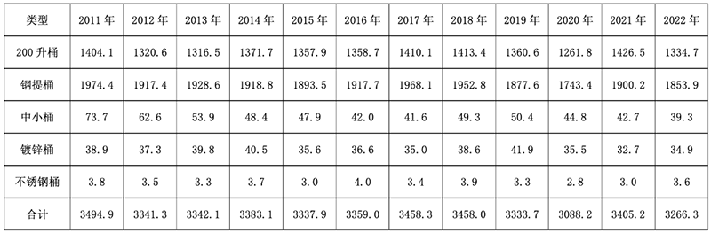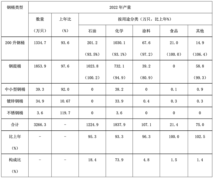 1、按用途分类200升桶、钢提桶与上年相比产量有所下降。