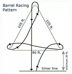 每个骑手的起始和结束是同一条线。骑手全速入场,触碰到桶是允许的,但如果碰翻桶就要罚时5秒。很显然,这对于 一场最短只需耗时14秒的比赛而言,无疑是灾难性的。如果骑手和马匹路线错误,将被取消参赛资格。完赛时间在18-14秒之间都是很好的成绩,一对有经验的人马组合,比赛平均时间在17-16秒之间。