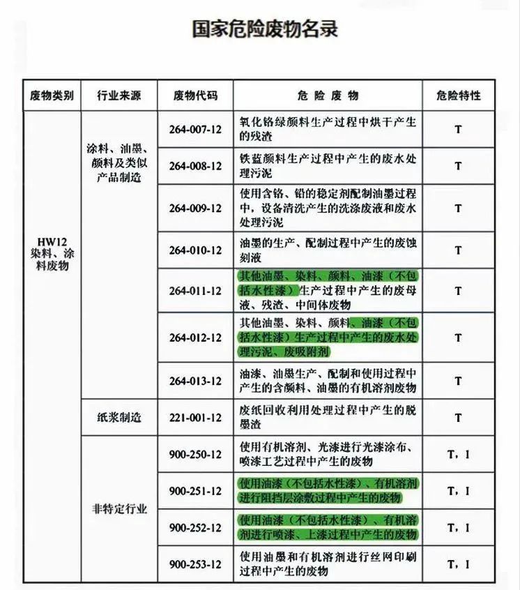 (2) 264-012-12 使用油漆(不包括水性漆)、有机溶剂进行阻挡层涂敷过程中产生的废物。