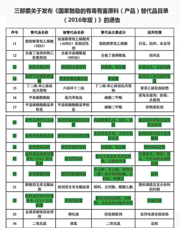 国家工业和信息化工业部公示:国家鼓励有毒有害原料(产品)替代目录中标示水性漆为油漆的替代产品。