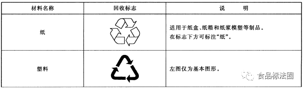 本文第2节规定了 纸、塑料﹑铝和 铁等常见材料 的 包装回收标志 要 求 , 但 在 一 些产品标准中 对特定包装材料 的 包装回收标志 要 求也确定执行GB/T 18455或GB/T 16288 的 要 求 。 如果产品经过环境标志产品认证或绿色食品认证 , 或者将这 些产品标准作为 执行标准 , 则必须标示包装回收标志 。