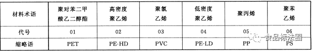 图3 是常用塑料代号和缩略语