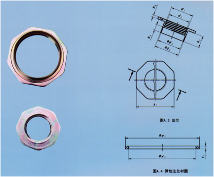 法兰和弹性法兰衬圈的结构和形状如下图A.3和图A.4所示,规格尺寸见表A.1。
