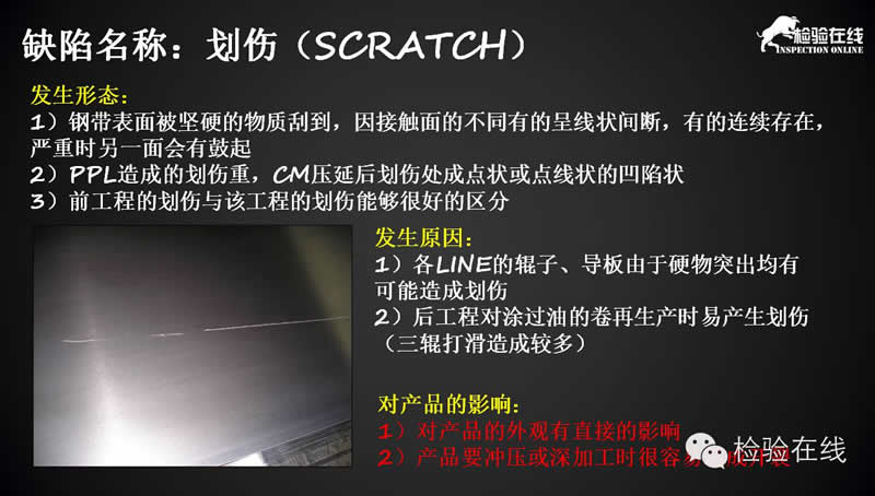 冷轧板表面出现的问题,一 般可以根据分布位置、缺陷形态来判定缺陷产生的原因并采取相应的办法进行处理。对于从事冷轧板质量人 员,对于冷轧薄板的表面缺陷应该很容易判断,但是对于销售人员就不一定了 。