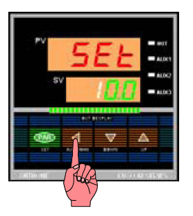 ①按PAR键立即放开,进入给定值设定状态,个位闪烁