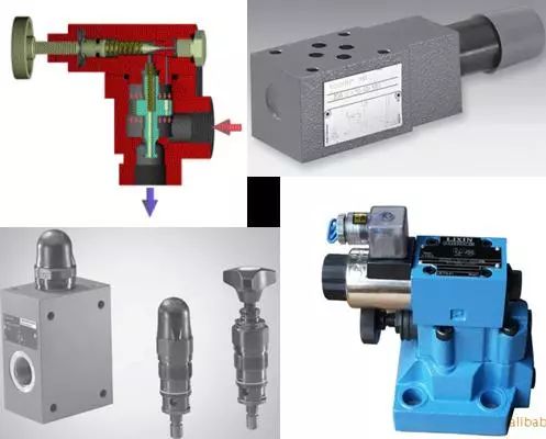 液压传动的一个特色就是可以很方便的实现过载保护,这就是溢流阀在起作用,它是通过阀口的开启溢流,使系统的压力保持恒定或限制最高压力。下图为一些常见的溢流阀。
