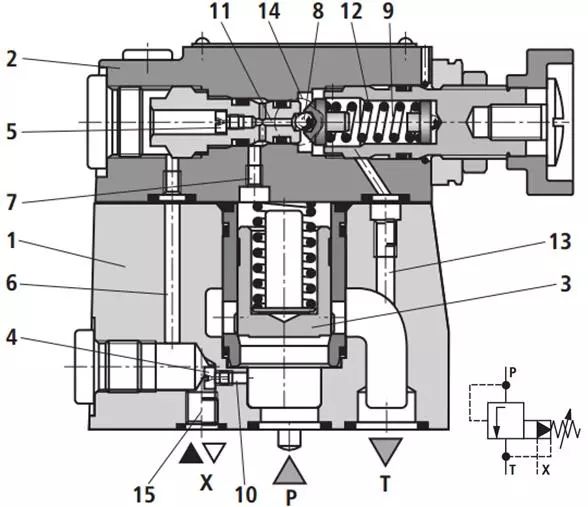 说明:该阀的先导阀的泄露油为内泄,x为遥控口,可以进行远程调压。