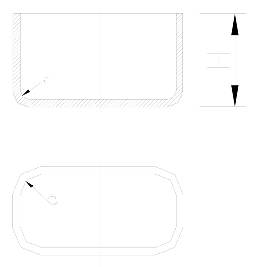 4.4 矩形拉伸件相邻两壁间的圆角半径
