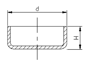 圆形无凸缘拉伸件一次成形时,高度H和直径d之比应小于或等于0.4,即H/d ≤0.4,如下图所示。