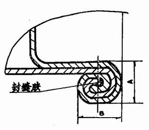 图2是德国的七层“螺旋形卷边”,图3是法国的七层“半圆形卷边”,图4是德国的七层“梯形卷边”,图5是英国万里公司的七层“螺旋形卷边”,图6是德国的“三重卷边”,图7是德国矛塞公司的七层“半圆形卷边”。在我国,金属桶的七层卷边形状多为类似于图7形状的图1式七层“半圆形卷边”。