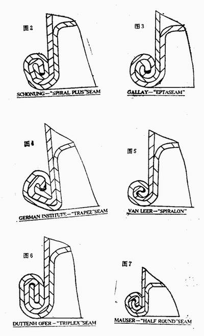 图2-图7 欧洲流行的各种七层卷边剖视图