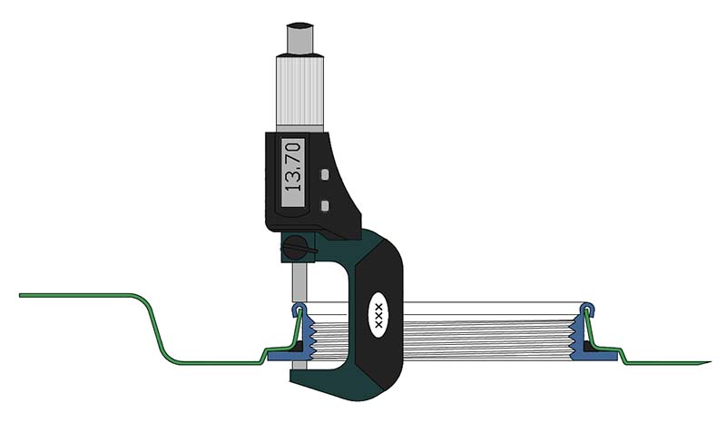 如果需要准确的尺寸数据,建议采用千分尺测量法兰的锁装高度,如图12所示。图例中使用千分尺测量2英寸的法兰,应在四个不同点上测量法兰的高度。