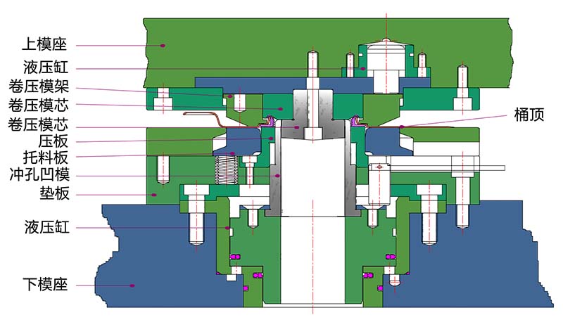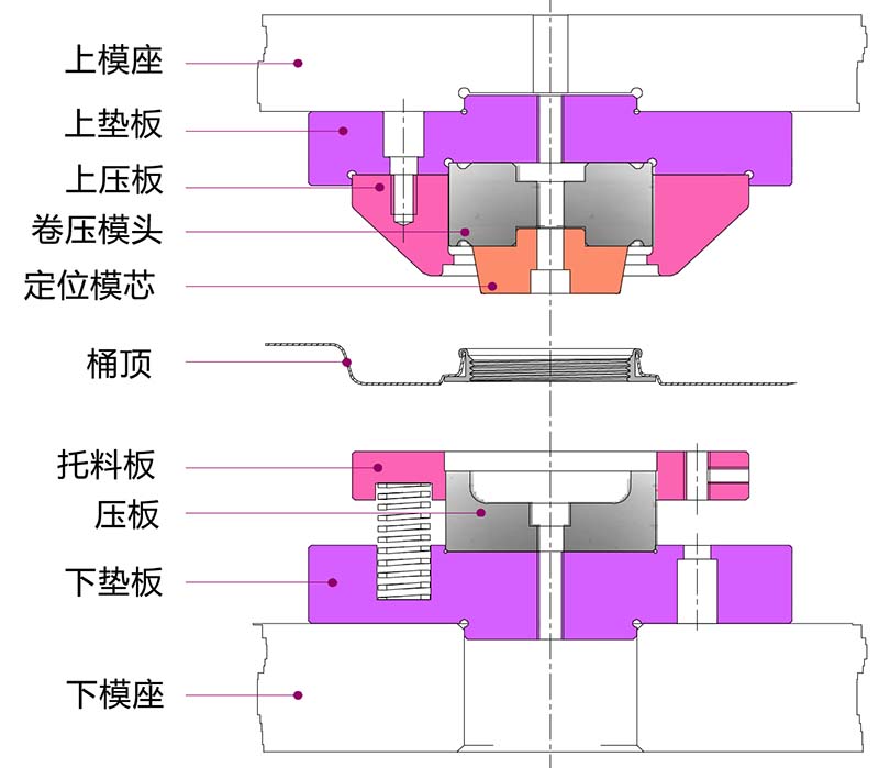 目前,在世界各国的钢桶制造工厂里,高端的全自动法兰锁装系统正在广泛应用。该系统包括自动送料、自动法兰送料、自动压力机等。该技术需要雄厚的技术力量,高素质的技术人员和质量工程师提供生产服务。该系统结合了新的技术和传统的工艺,具有很强的竞争能力和质量,以及较高的可靠性。该自动装置可以是单工序,也可以是双工序,这可以根据用户的需求进行订制。例如在桶顶注入口法兰处冲压出凹进的口袋形状,或者在桶顶底错位自动化生产线上完成单工序操作和双工序操作。