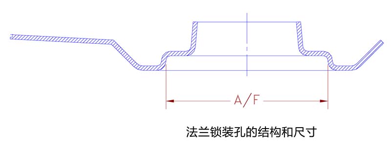 借助工艺模具,在桶顶上进行法兰安装孔的冲压和翻边时,应符合规定的直径和高度尺寸,如图5所示。