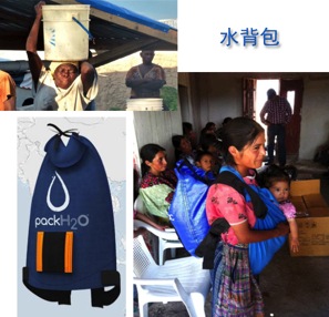 ● 格雷夫发明了水的背包,用在发展中国家,将水从水源运到家里一点都会损失