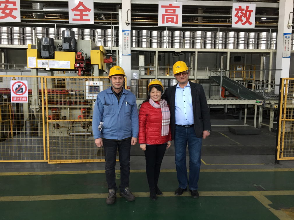 生产主管赵主任、工厂长刘厂长陪同辛巧娟参观车间