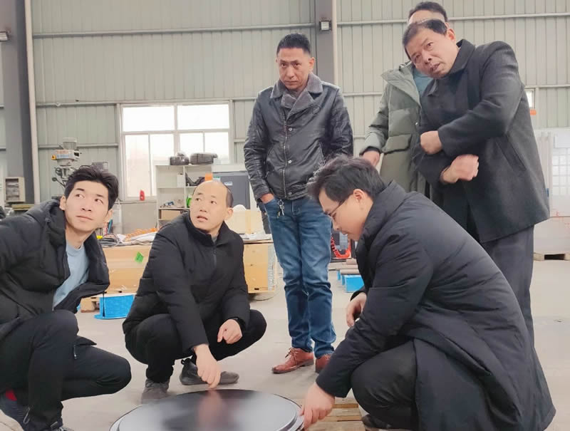 2020年12月23日,嘉兴中粮制桶有限公司领导莅临纽格润车间查看立式卷封机自动上料机器人最新生产进程。以下为各位领导交流现场: