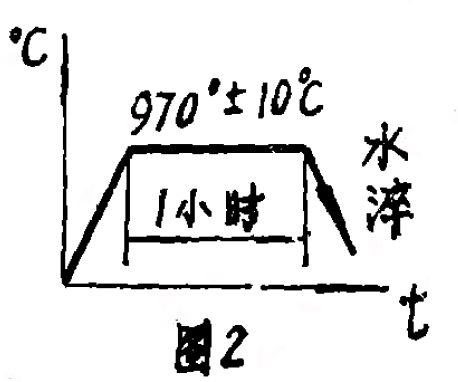 6、加热至960~980℃,保湿1小时后在盐水中淬火,随后在大约470±10℃保温4小时回火后空冷。固溶淬火和时效处理规范如图2和图3所示。