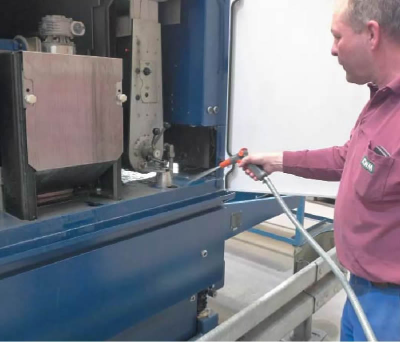 设备清洁是产品质量的重要保障之一。为此,每一班生产结束时,操作者都要对机器做完全彻底的清洗,机器配置清理装置是非常必要的,如图8所示。