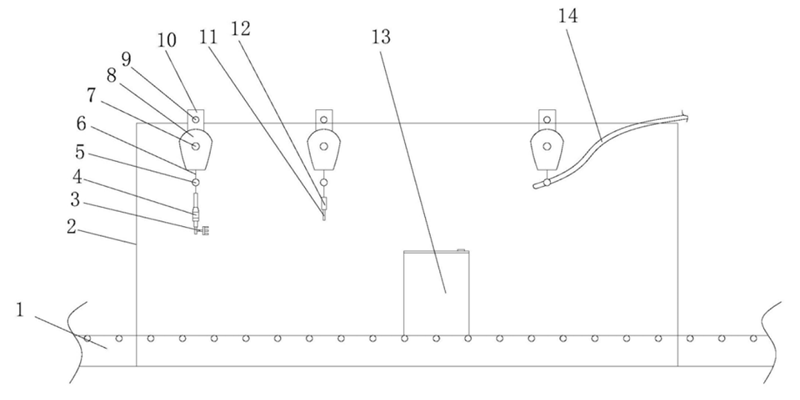 本实用新型的灵活性好,支架和其他的装置可以随辊道的布局而定,不需要单独的厂地,节约了空间和成本,给企业带来了更大的利润。