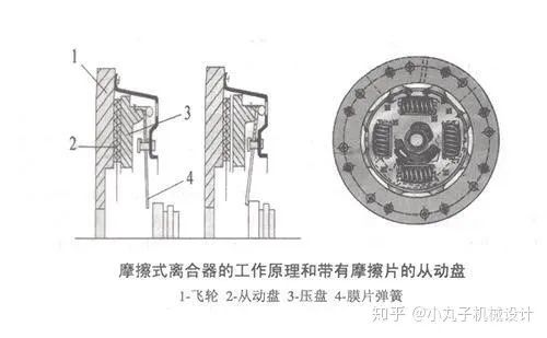 摩擦离合器是应用得最广也是历史最久的一类离合器,它基本上是由主动部分、从动部分、压紧机构和操纵机构四部分组成。