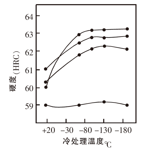 冷处理温度对硬度的影响(见图5), 随冷处理温度的降低, 硬度逐渐提高。
