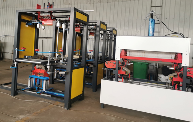 正在调试的卧式钢桶外擦设备(桶底顶及桶身同时擦拭)