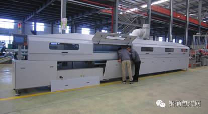 在采用覆膜、预印或预涂钢板制桶的生产线中,桶身经过缝焊工序、补涂工序以后,需要迅速对补涂好的桶身焊缝进行烘干、固化,使桶身补涂处具有与周边预涂表面相同的涂层作用。烘干质量直接影响到补涂质量,甚至整个桶身的质量。所以制桶工艺中对烘干机性能要求很高。