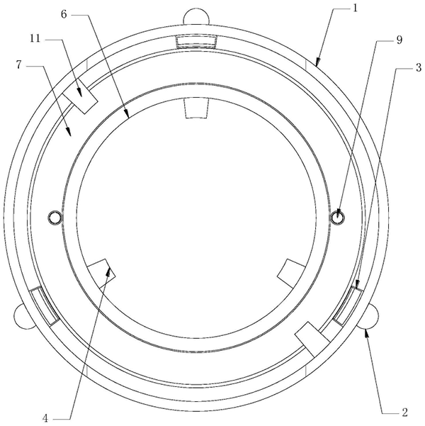 本实施例中,如图1、图2和图3所示,架杆9的底端固定套接有轴承,且轴承的外圈固定嵌设在旋环7上,轴承可以有效降低架杆9运动过程中的摩擦系数,能够在限位的同时,并保证其转动精度。