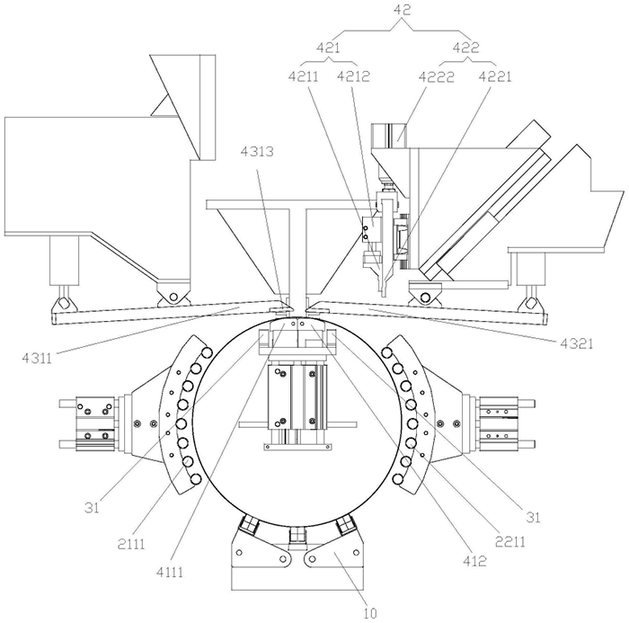优选的,所述定位座组件41包括升降动作的动座模组和固定设置的定座,所述动座模组和定座左右设置;