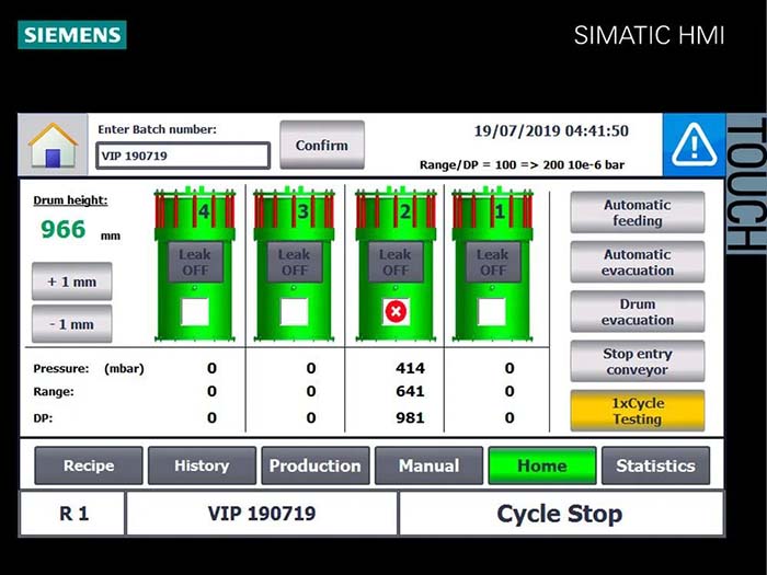 对于封合机的桶底深度或波纹轮廓或规格,转换是“立即”的,通过 HMI 调用记录的配方来自动进行。