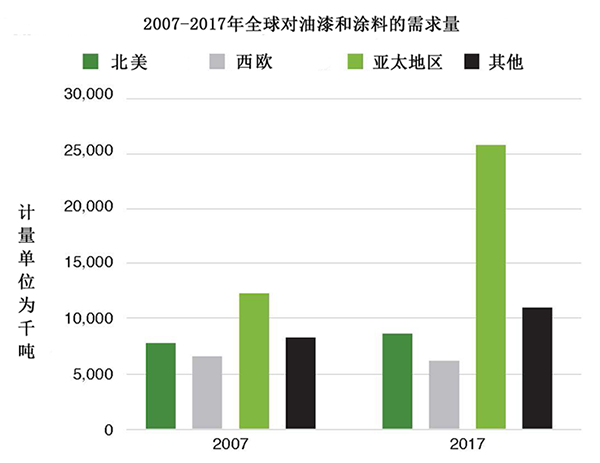 化工生产重心正在转移,原油生产基地也开始转移,1980,美国和沙特阿拉伯是化工和原油的主要生产基地,到了1997年,生产基地扩大到俄罗斯和中国。2016年扩大到南美洲。与此同时,全球对油漆和涂料的需求在亚太地区也有所增加,反映了该地区新兴经济体的增长情况。用户市场的变化对世界各地钢桶的生产产生了巨大的影响。