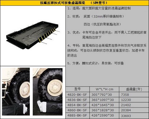 9、有没有油罐车或其它卡车的滴漏问题,是否需要选择可让卡车自由进出的、可折叠携带的、大型抗碾压撑扣式盛漏围堤;