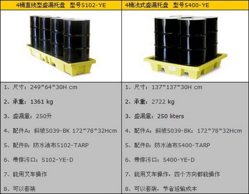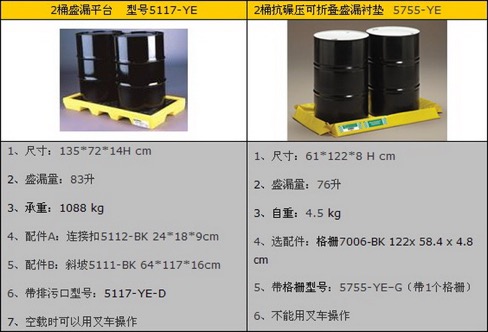 3、要储存多少容器(比如55加仑圆桶)的数量,总体积和尺寸如何,盛漏托盘和盛漏平台的的尺寸是否足够?通过计算就可以知道要选择什么样的盛漏托盘或平台,包装所有容器存放在盛漏托盘或平台的有效面积内(不应包含盛漏托盘或平台的边沿)。盛漏托盘的容积是不是够?有的国内厂家,在这方面2,根本就没有测试,就是简单抄写人家的数据,是不负责任的行为。你需要擦亮眼睛,叫他提高实验数据和正规检测报告。