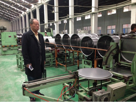王总陪同秘书长参观该公司的钢桶生产线