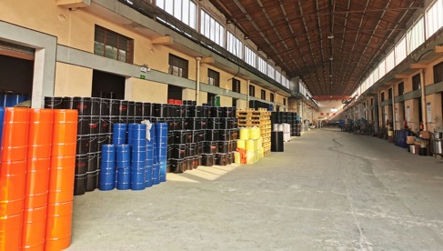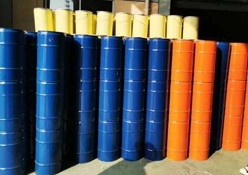 工厂中间为产品及原辅材料运输通道,左边是中小桶车间,右边是大桶车间
