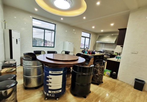 说起贝氏制桶的贝国平总经理,真是个奇才,他是非常阳光帅气的帅小伙,不但人长的长的帅气潇洒,干事也非常干炼,喜欢创新和使用新技术、新工艺。是他首先在国内使用覆膜铁和预涂板制做钢桶,另外在制作不锈钢桶过程中,大胆创新,打破传统钢桶的制作方法和工艺,生产出的不锈钢桶全程采用焊接工艺,桶的洁净度及抗腐蚀能力大大争强。他利用钢桶创意的家居系列产品在云之家网上有官方旗舰店销售(我们作专题报导)。现在我们一起去参观一下展室的各种不锈钢钢桶。