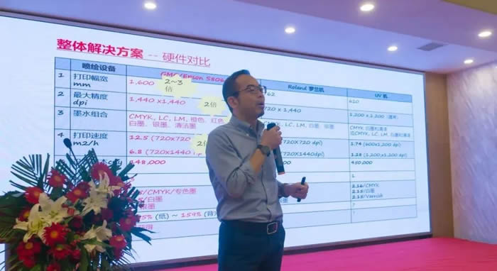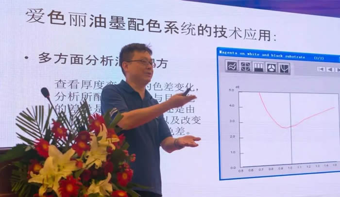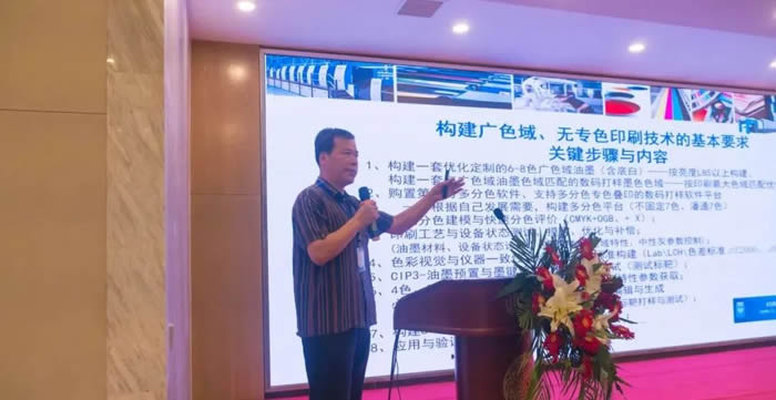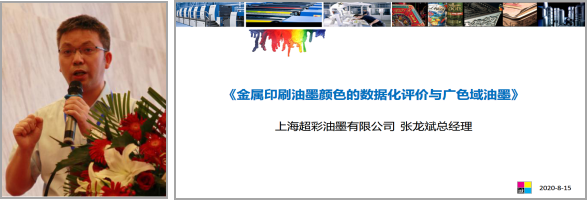 上海超彩油墨有限公司总经理张龙斌主要介绍油墨色彩数字化评价(3纬度评价)、油墨电脑配色应用、广色域油墨特点、潘通覆盖率及应用可行性、潘通覆盖率的案例介绍、免专色印刷前景。倡议提出“只要专色效果、不要专色油墨”。